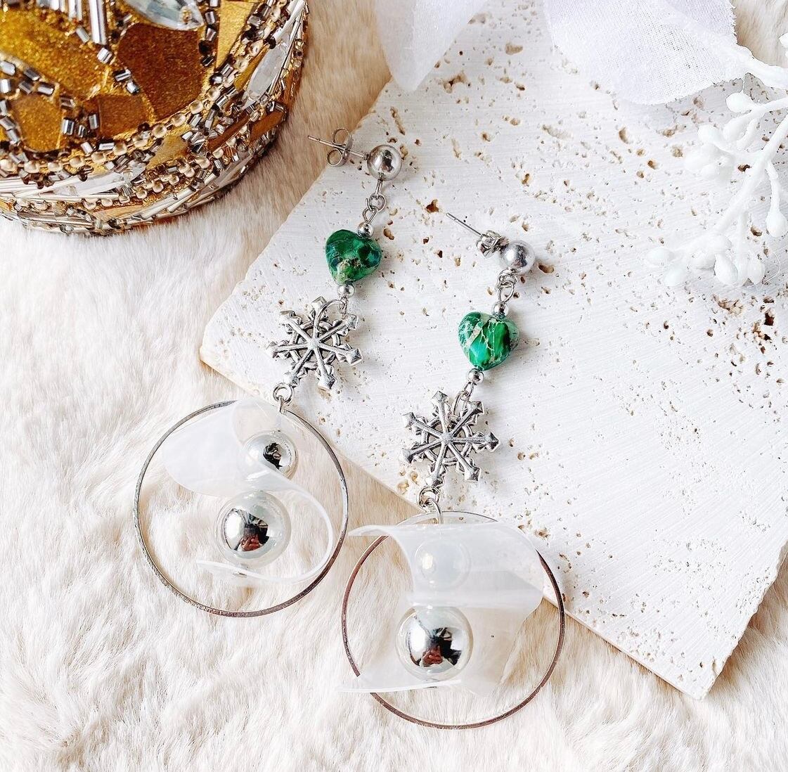 小さなモチーフで季節を味わい楽しめる冬のあったかコーデにぴったりなピアス。