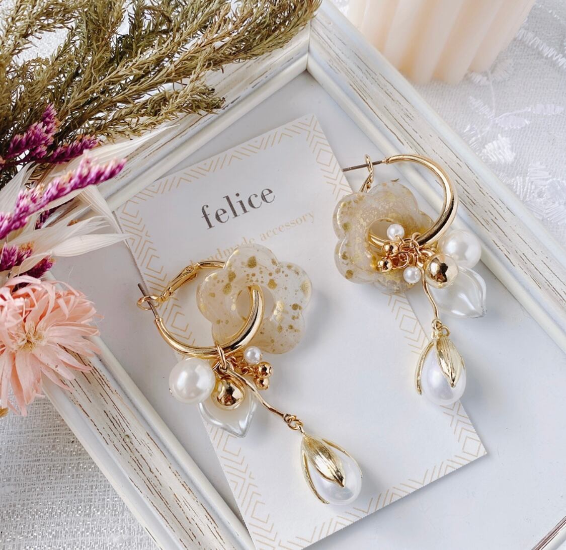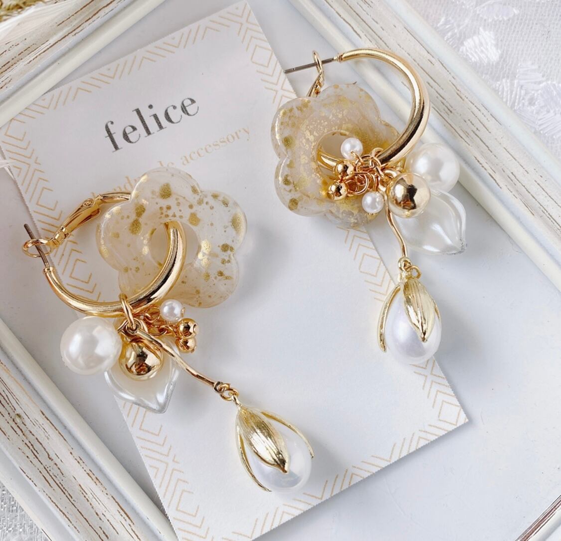 キュートなラメ入りクリアフラワーとつぼみパールチャーム☆