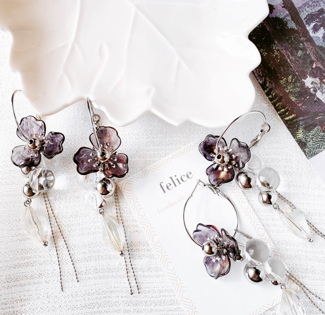 クールにかっこいい透け感のあるブラックパープルカラーのフラワー✼••