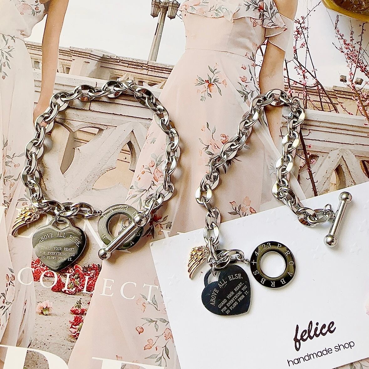 肩羽ハートネックレスの