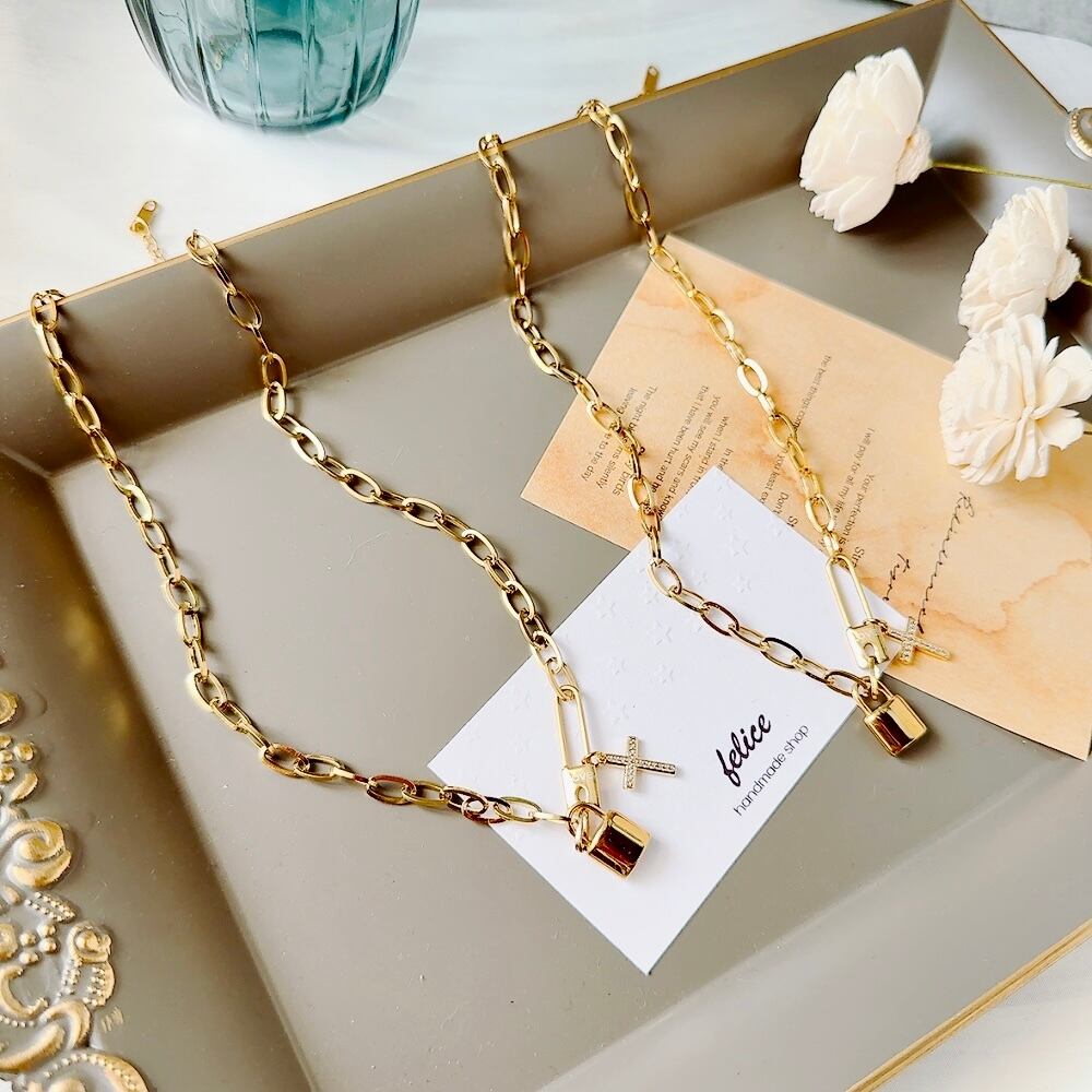 チェーン、南京錠、LOVE安全ピン : ステンレス